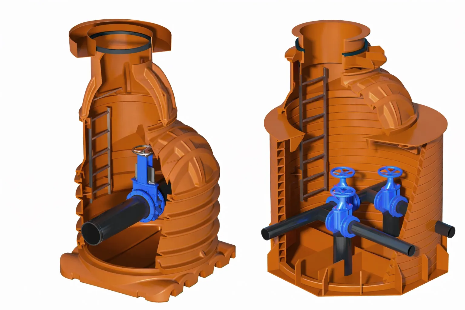 Водопроводные пластиковые колодцы предназначены для размещения и обслуживания запорно-регулирующей арматуры, пожарных гидрантов и измерительных приборов на наружных сетях водоснабжения. Колодцы обеспечивают удобный доступ к инженерным узлам и надежную защиту оборудования от воздействия внешней среды.